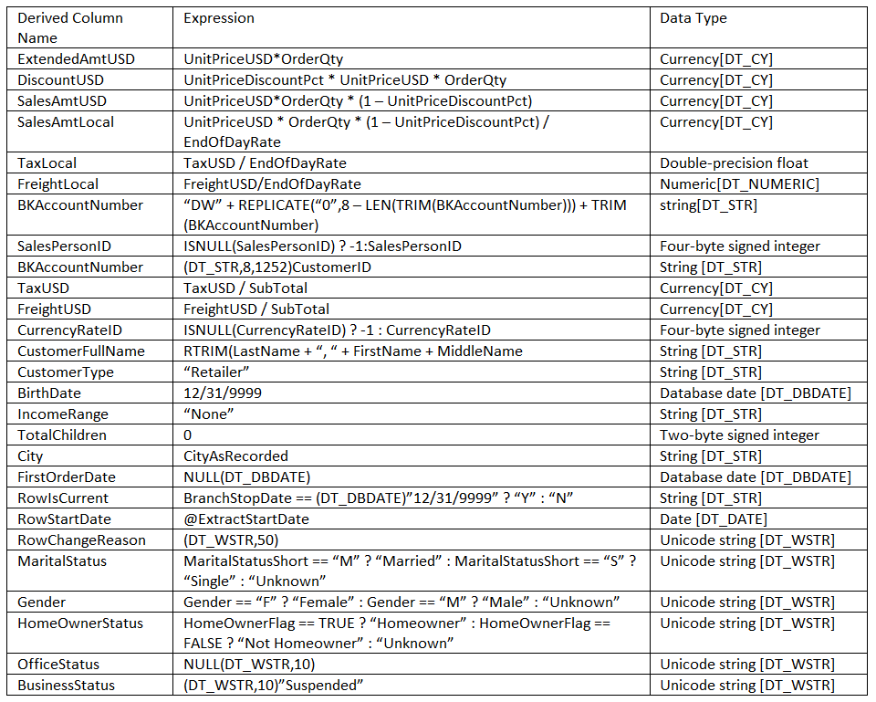 Sometime its kind a hard to remember different SSIS syntax and how to use them. I build up a list to help me out. Expressions used are from AdventureWorks sample provided with Microsoft SQL Server.