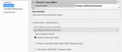 My input is a Report Date. I would like to create a collection object of DateTime using Script task with this input. There is no Data Flow in this work flow. Later, I will be using this collection object in a Foreach loop container.